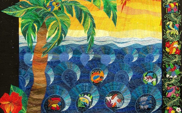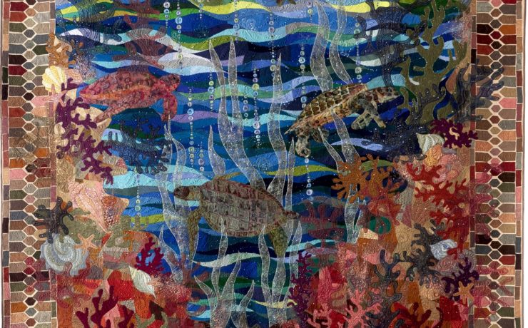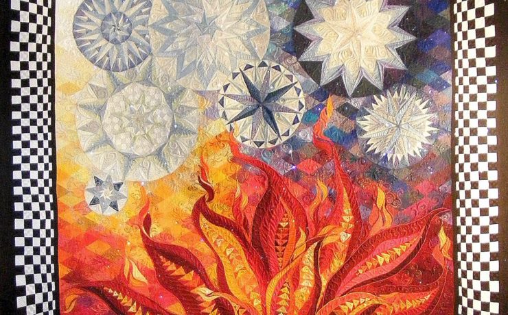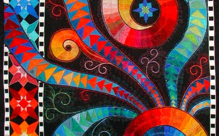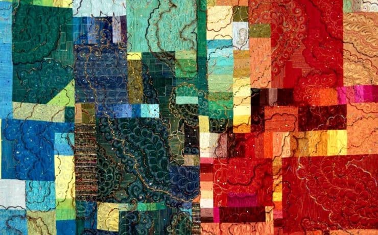 2017 • 180 x 225 cm Aus einer spontanen Idee heraus verwendete ich all die Reststücke und Überbleibsel meiner Showquilts der vergangenen Jahre. Ich nähte die Seidenfitzel willkürlich und ohne Plan zu Streifen zusammen. Es lassen sich durchaus Teile aus den Showquilts wiedererkennen. Die Randbordüre