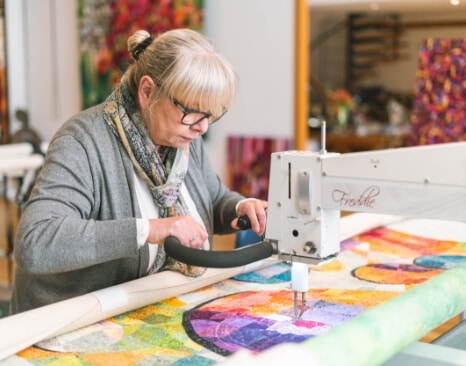 Claudia Pfeil selbst arbeitet täglich an ihren Maschinen: Patchwork-Tops werden im Kundenauftrag gequiltet, nach Wunsch freihand oder computerisiert.