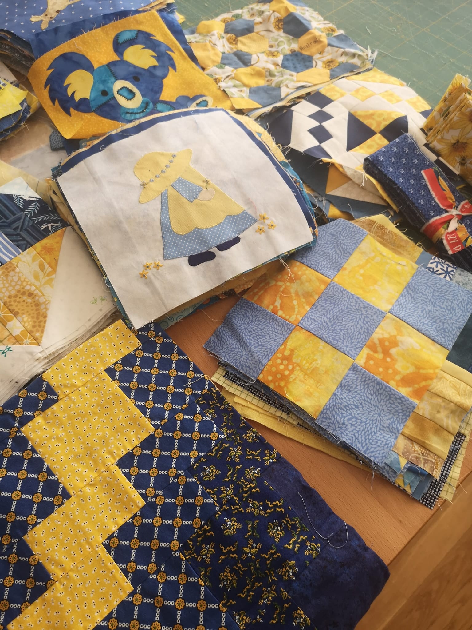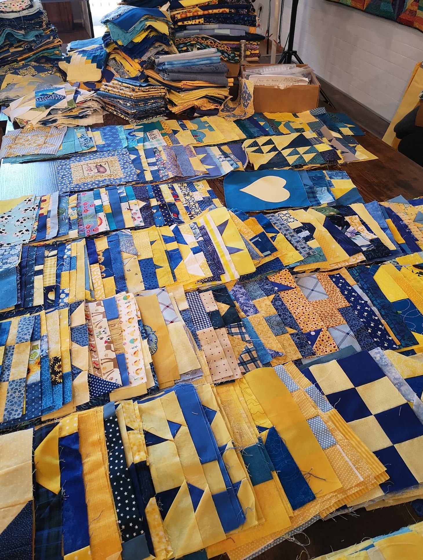 Following our appeal in February 2022, we received over 28,850 patchwork blocks with various motifs in the colors of the Ukrainian flag from 27 countries.