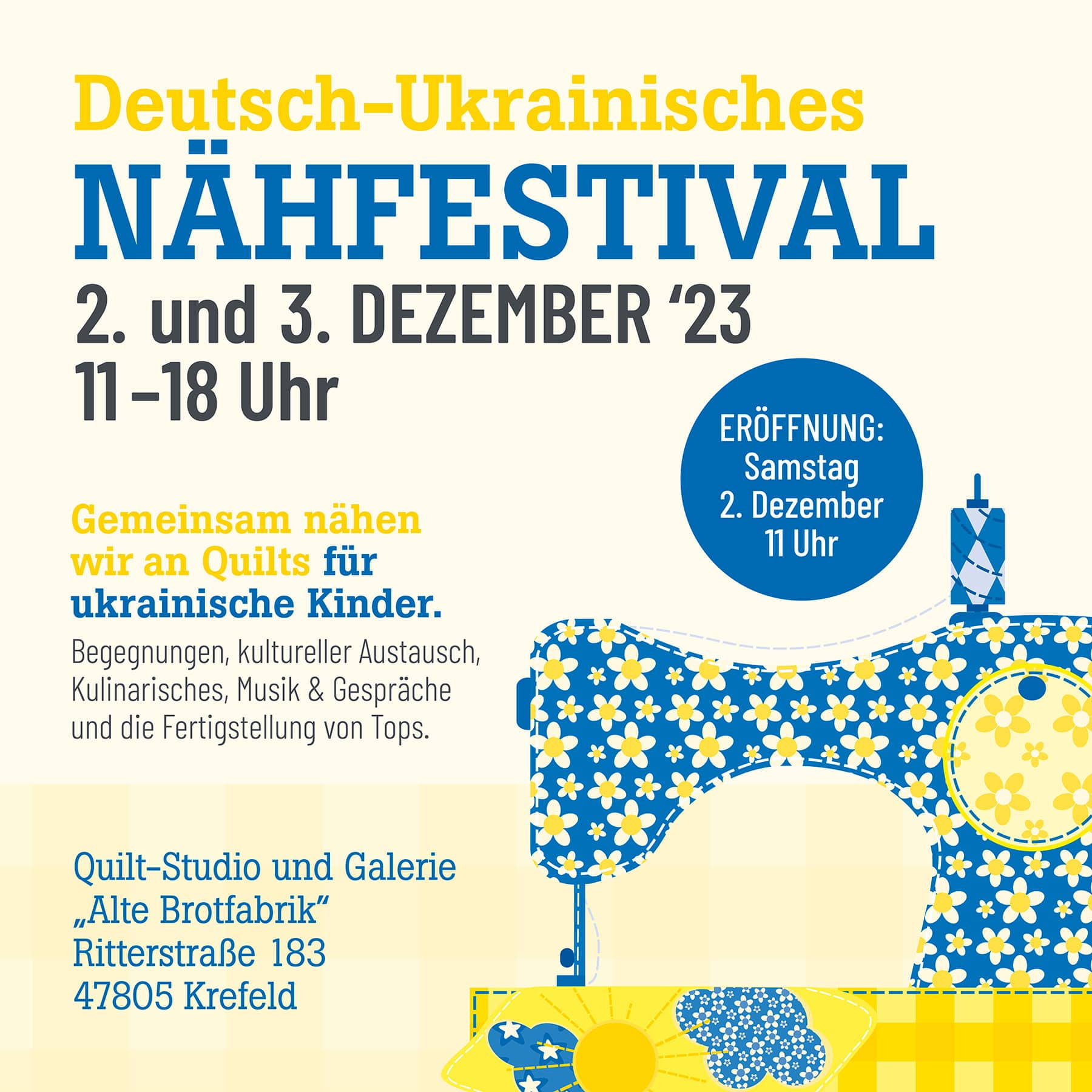 Now we are going one step further - we are organizing the 1st German-Ukrainian Sewing Festival in the rooms of the Quilt Studio in the Alte Brotfabrik! You are cordially invited!