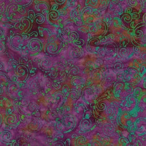 Die Kollektion „Melody“ besteht aus 20 verschiedenen Batik Stoffen. Sie setzt sich aus kontrastierenden, aber ausgewogenen Grün- und Magentatönen zusammen, die Designs basieren auf Claudias dekorativen Quiltmustern.