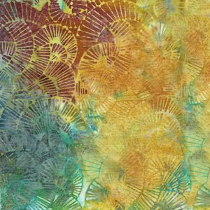 „Santorini“ ist die neue Island Batik Kollektion von Claudia mit einer kräftigen Farbpalette aus Petrol, Grün und Blau, Beige , Orange und Braun.